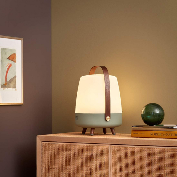 Wooden handle Polyethylene lamp cover Wooden feet with rubber surface Led light Bluetooth speaker USB chargeable 10 hours music playtime 18 hours led lighting (no music) Stereo abilities with one other lite-up device |